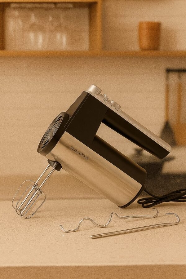 خلاط يدوي كهربائي UniqueRack – ستانلس ستيل – 5 سرعات + ملحقات خفق وعجن
