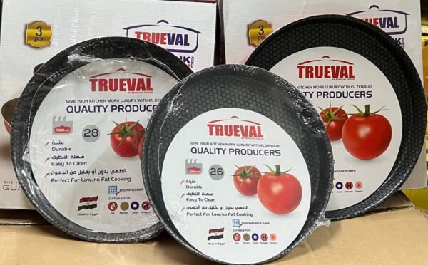 Be the first to review “طقم 3 مقلايات تروڤال Trueval غير لاصقة – مقاسات 20-26-28 سم”
