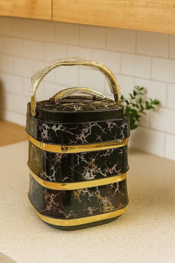 Be the first to review “علبة حفظ الطعام متعددة الطوابق بتصميم رخام أسود ذهبي – 3 طبقات”
